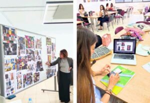 Students developed mood boards, sketches, and clothing designs inspired by Albanian symbolism, experimenting with weaving and textile techniques. Their learning journey extended beyond POLIS, with training sessions at partner universities in Athens and Skopje, fostering international collaboration and creative growth.